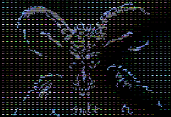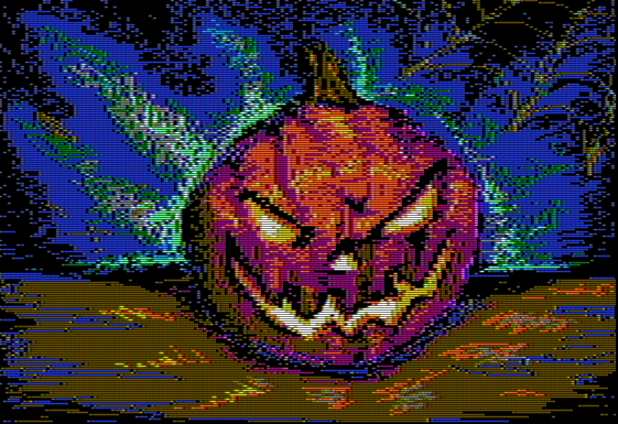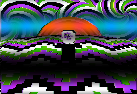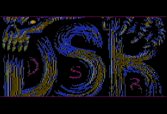 The plasma overlay was a happy accident when trying to make a double-hires plasma effect. It's a variant of the FrenchTouch "Plasmagoria" plasma but in double hires. It's actually what you get when you run the orange/blue hi-res version (from my second reality port) unchanged with double-hires enabled. Due to NTSC artifacting it gives a really nice almost iridescent look. Completely unintentional. The reason the background image is still visible too is because the plasma is only drawing every 4th row (I think it's 4th, too lazy to check right now) for speed. I was going to make a "proper" double-hires plasma but unpacking/repacking all the pixels sounded exhausting (and slow) and the alternative seems like it would have been an enormous amount of lookup tables. This particular chunk of demo has to fit in 4k so not a lot of room for something fancier. |