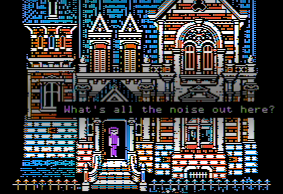 This is regular hi-res too as it only needed four colors so dhgr would be overkill. It's twice as fast to scroll, and also a lot easier to print text in plain hi-res mode. In later scenes when you do see text in double-hires mode it's actually doing sub-pixel rendering in order to fit 40-columns across. I had to hack up my conversion utilities to handle this properly. |