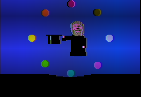 I've always wanted to make this falling letter effect. A lot of C64 demos do fun things with the boot message text before launching into the demo proper. On the Apple II there's a bit of a giveaway because when you sneakily switch to graphics mode, the color-killer circuit turns off so the text suddenly gets purple/green fringes. It technically might be possible to avoid that by cycle-counting and flipping from text to graphics mid-screen but didn't seem worth the trouble. |